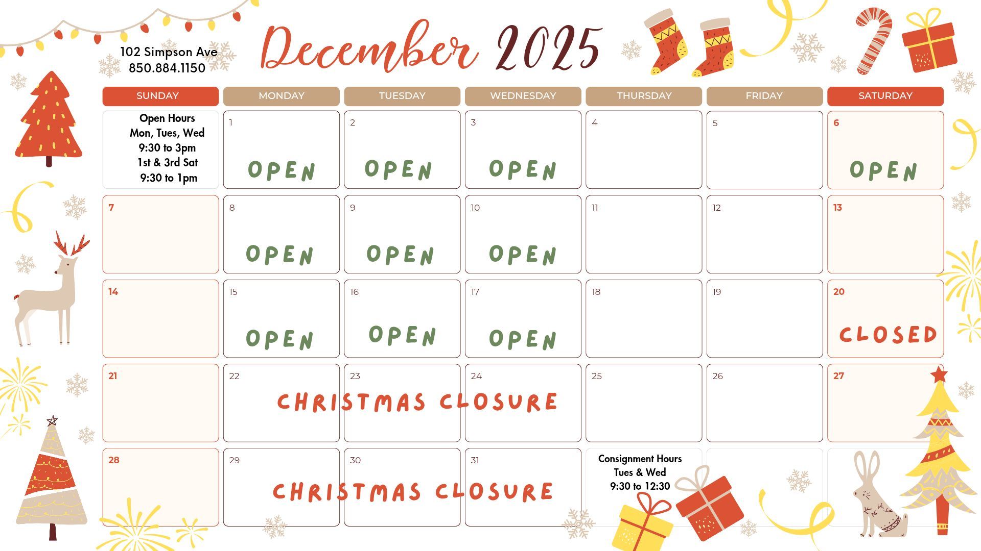 At the Hurlburt Thrift Shop, we offer consignment services. Our consignment hours of operation are Tuesdays and Wednesdays from 9:30 a.m. to 12:30 p.m. Attached below is our consignment contract.